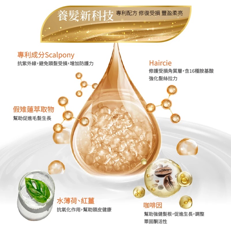 · 添加法國研發原料 ,提升髮絲柔韌度與光澤感