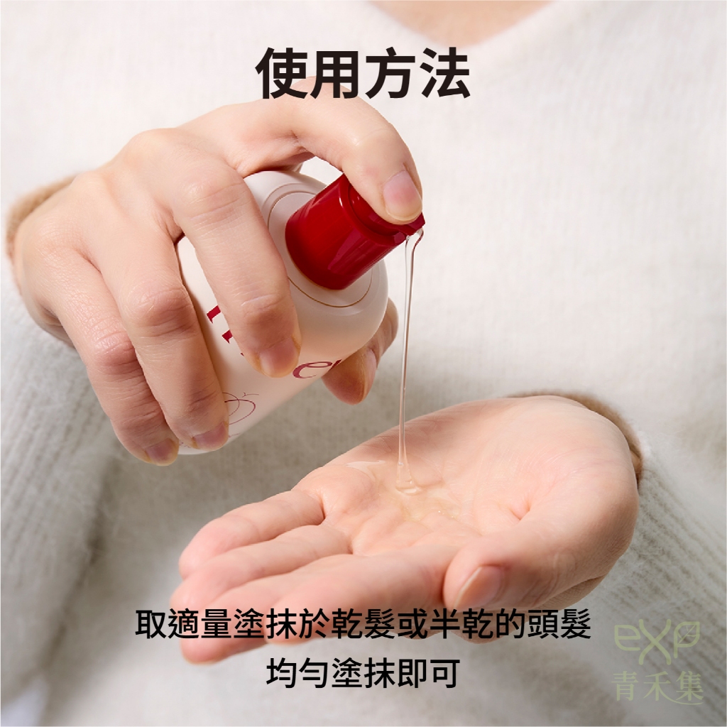 均勻塗抹於乾髮或微濕髮的髮中段至髮尾