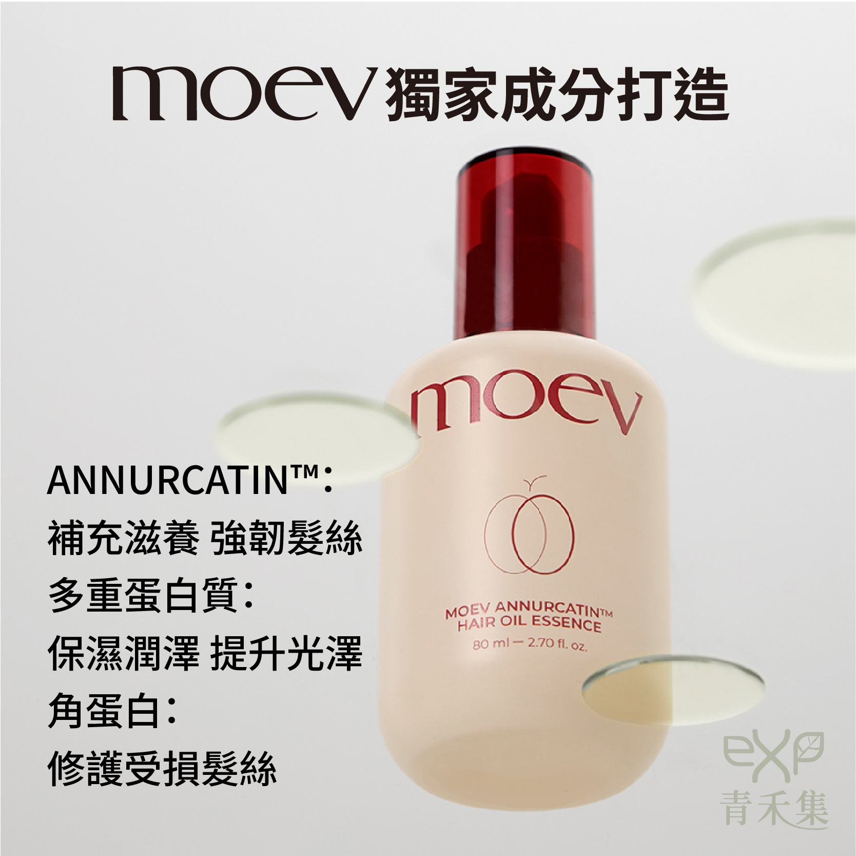 MOEV 天然專利蘋果多酚髮尾油抗熱護髮精華 80ml|清爽柔順光澤髮油