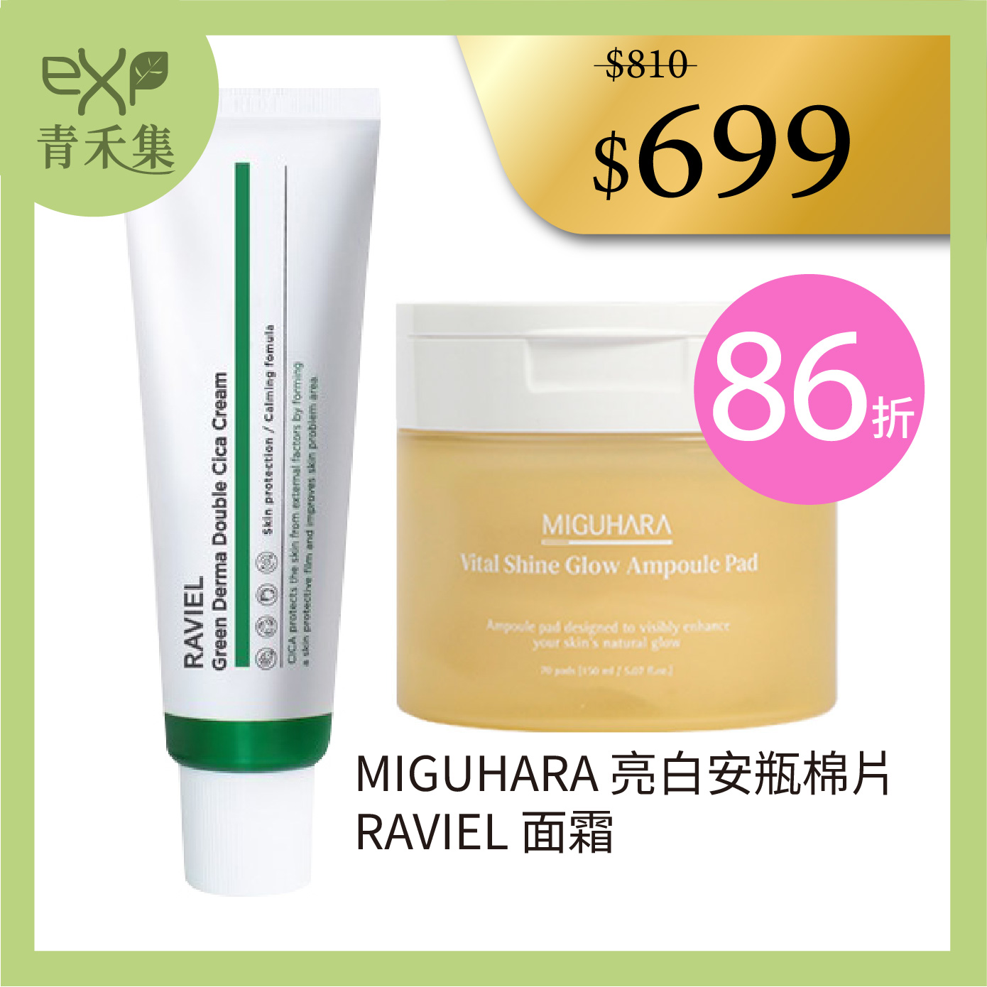 青禾集【現貨】面霜 保養品 韓國MIGUHARA 亮白安瓶棉片 + RAVIEL 特惠組 保濕 正品