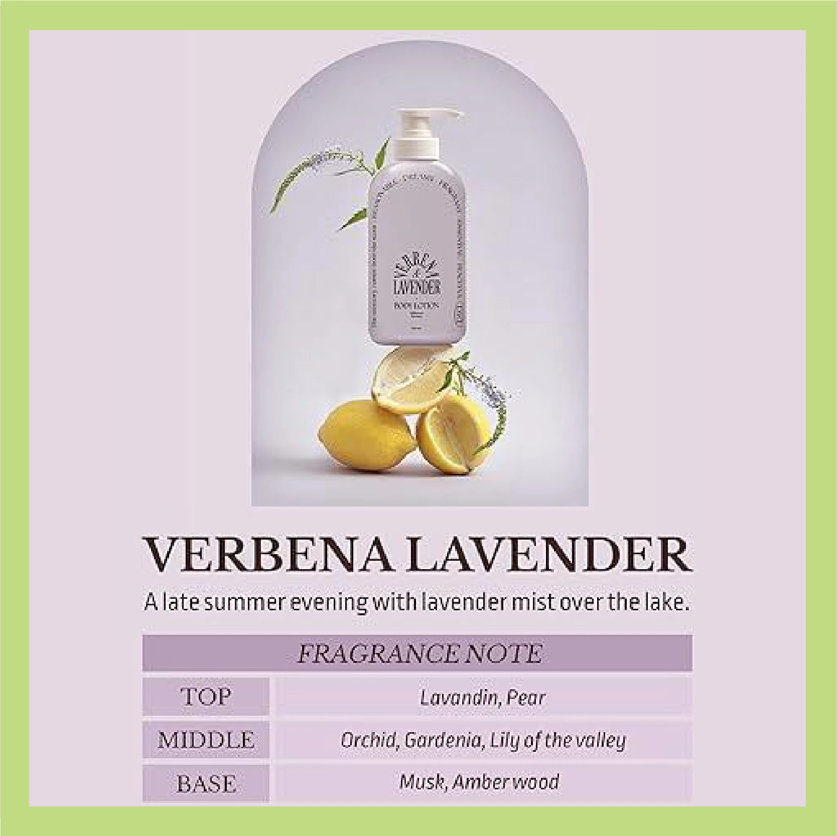 前調:薰衣草、甜梨 中調:蘭花、梔子花、鈴蘭花 基調:麝香、琥珀木