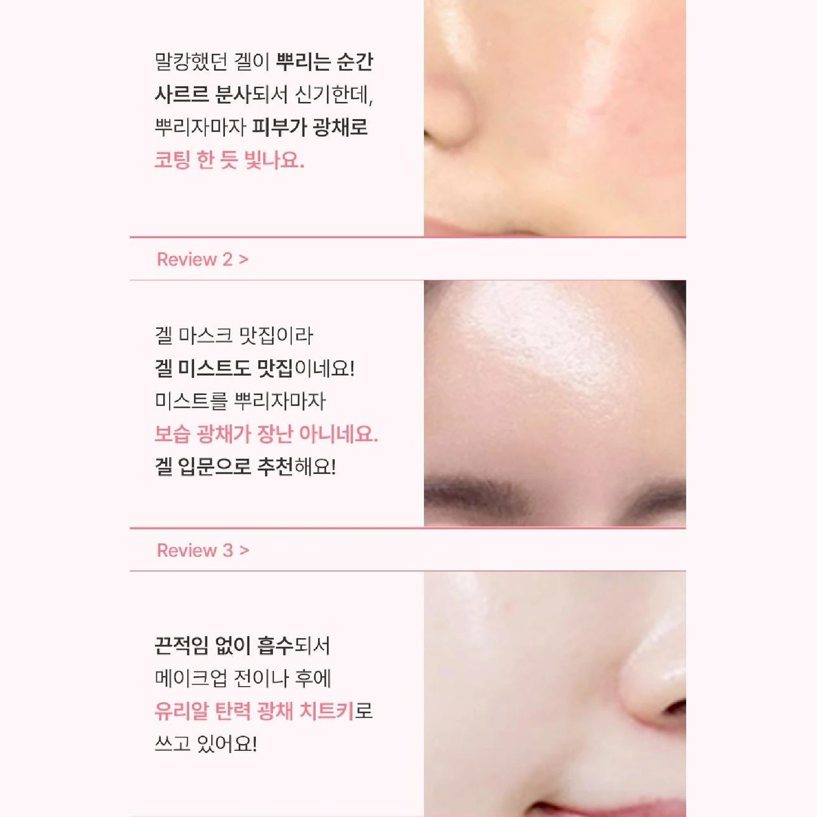 粉嫩凝膠噴出秒變細緻水霧,在肌膚形成透明水光膜💦